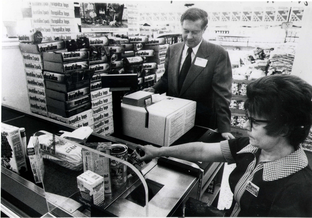 1974: Fairport Rd. Store is first in NY State (third in country) to scan UPC with Robert Wegman observing